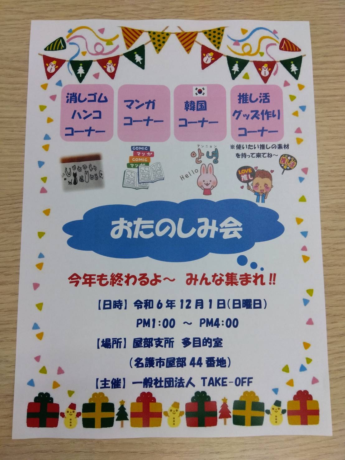 2024年12月1日 TAKE-OFFさん主催のおたのしみ会 に参加!